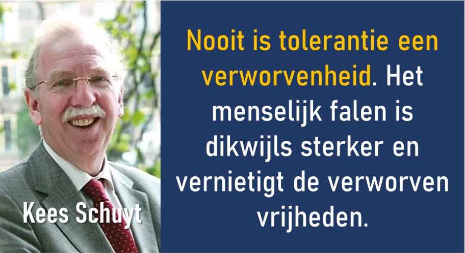 De derde en laatste lezing in de reeks over tolerantie wordt verzorgd door een van de meest invloedrijke sociologen van Nederland: emeritus hoogleraar sociologie aan de Universiteit van Amsterdam, jurist en columnist Kees Schuyt. Tijdstip van digitaal samenkomen: dinsdag 7 mei, als altijd om 20.00 uur.