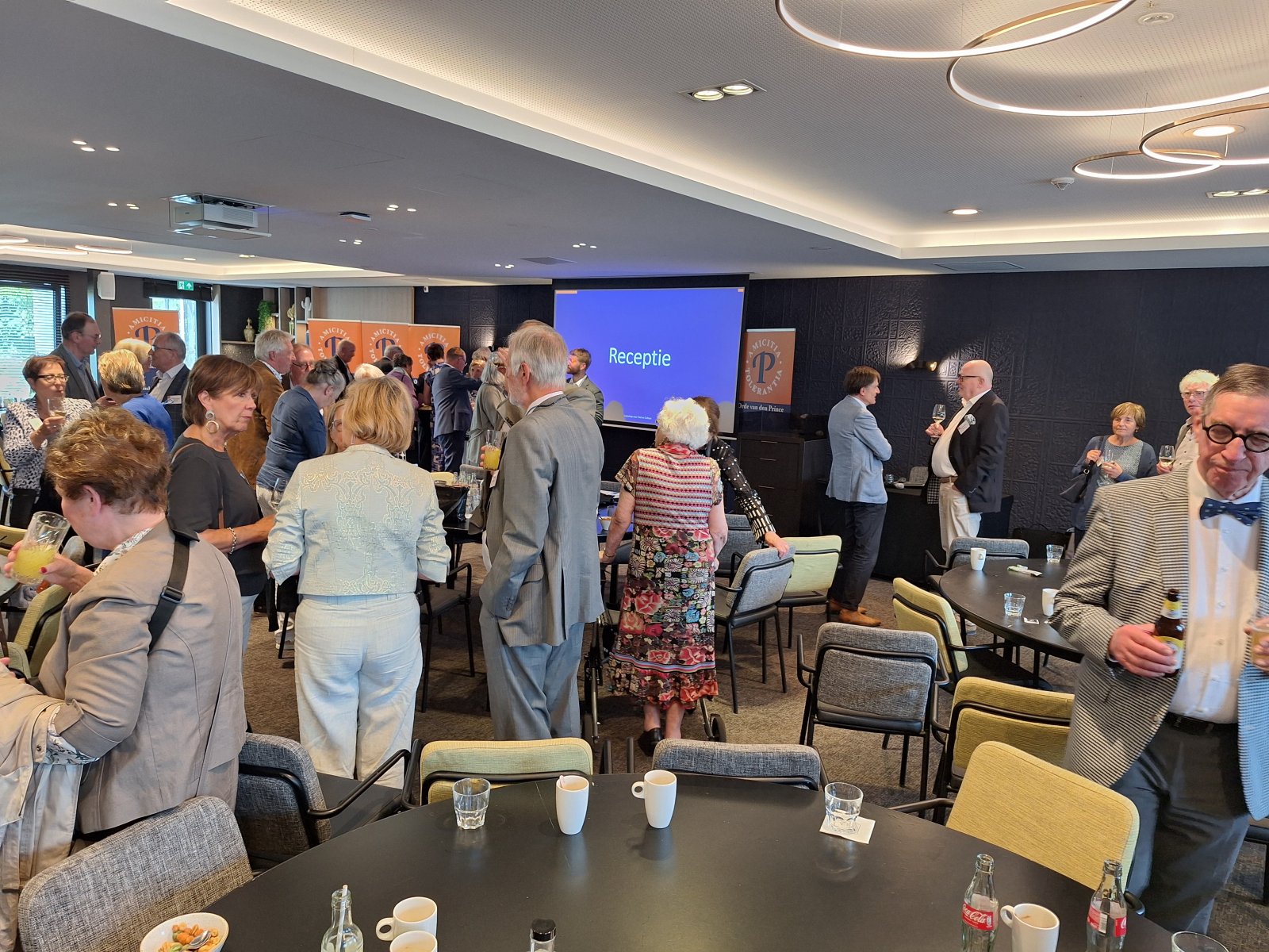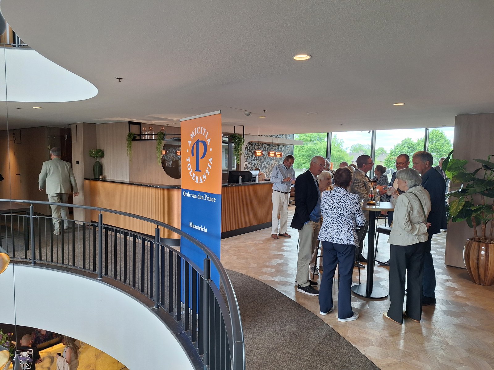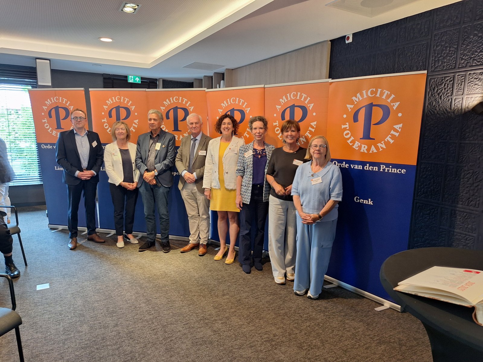 Na de pauze was er drie kwartier ingeruimd voor discussie en dialoog. Aan de hand van een aantal stellingen, waarop de bezoekers konden reageren met hun smartphones, kwam een levendige interactie op gang tussen bezoekers en de presentatoren. Een van de opmerkingen was: “Als alle Europeanen minimaal twee vreemde talen zouden moeten beheersen, zou iedereen prima met elkaar kunnen communiceren.” Vervolgens kreeg Peter Lepez, de gewestpresident, het woord. Allereerst was het tijd om de aanwezige nieuwe leden in het zonnetje te zetten en hen het Gulden Boek te laten tekenen. Vervolgens bedankte hij de afdeling Maastricht voor de vlekkeloze organisatie van deze dag en ging hij verder in op het thema bruggen bouwen. Hij benoemde de kracht van vriendschap en verdraagzaamheid, niet toevallig de pijlers waarop de Orde van den Prince is gebouwd. Vriendschap is de kracht die die bruggen draagt. Verdraagzaamheid is de sleutel tot het behouden van vrede en harmonie in onze samenleving. Wat ons in staat stelt om niet alleen samen te leven, maar ook echt verbinding aan te gaan, zijn twee krachtige krachten: taal en cultuur. Zij vormen de fundamenten voor vriendschap en verdraagzaamheid en zijn daarom dé kern waarrond de Orde van den Prince is gebouwd. Taal opent het gesprek. Cultuur opent het hart. Samen maken ze vriendschap en verdraagzaamheid mogelijk in een samenleving die steeds diverser wordt. Tot slot bedankte hij iedereen voor zijn en haar aanwezigheid.