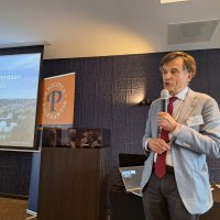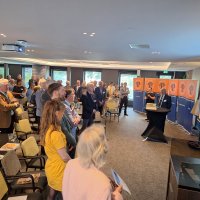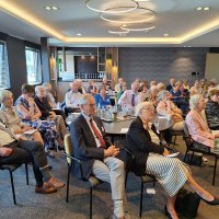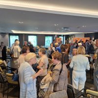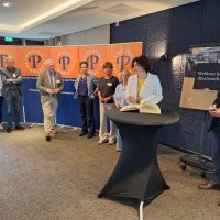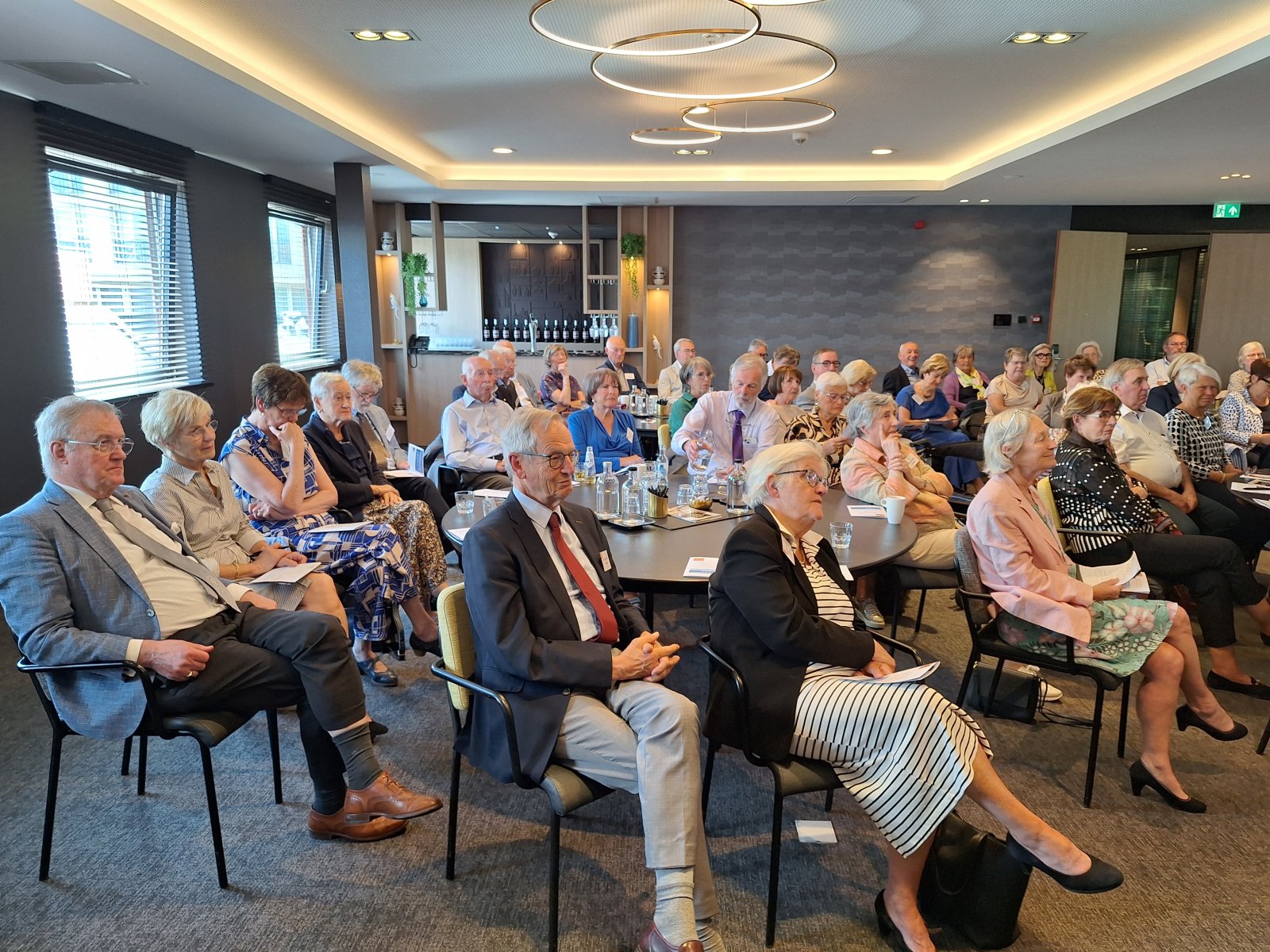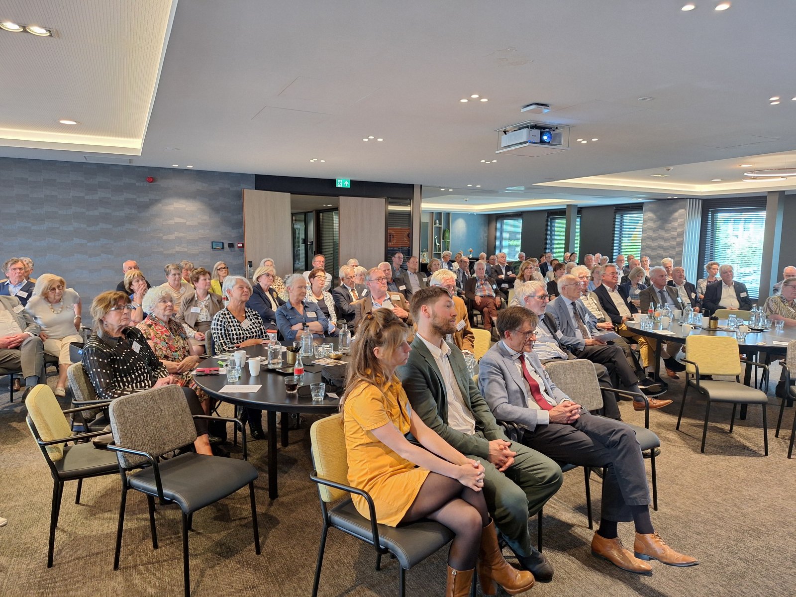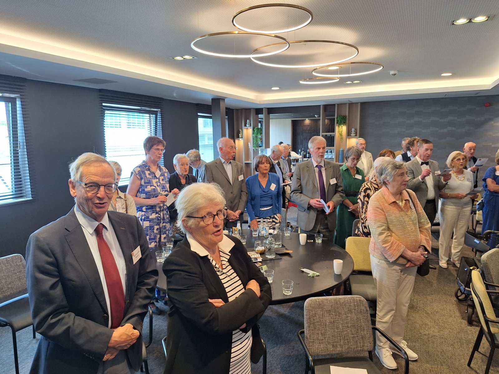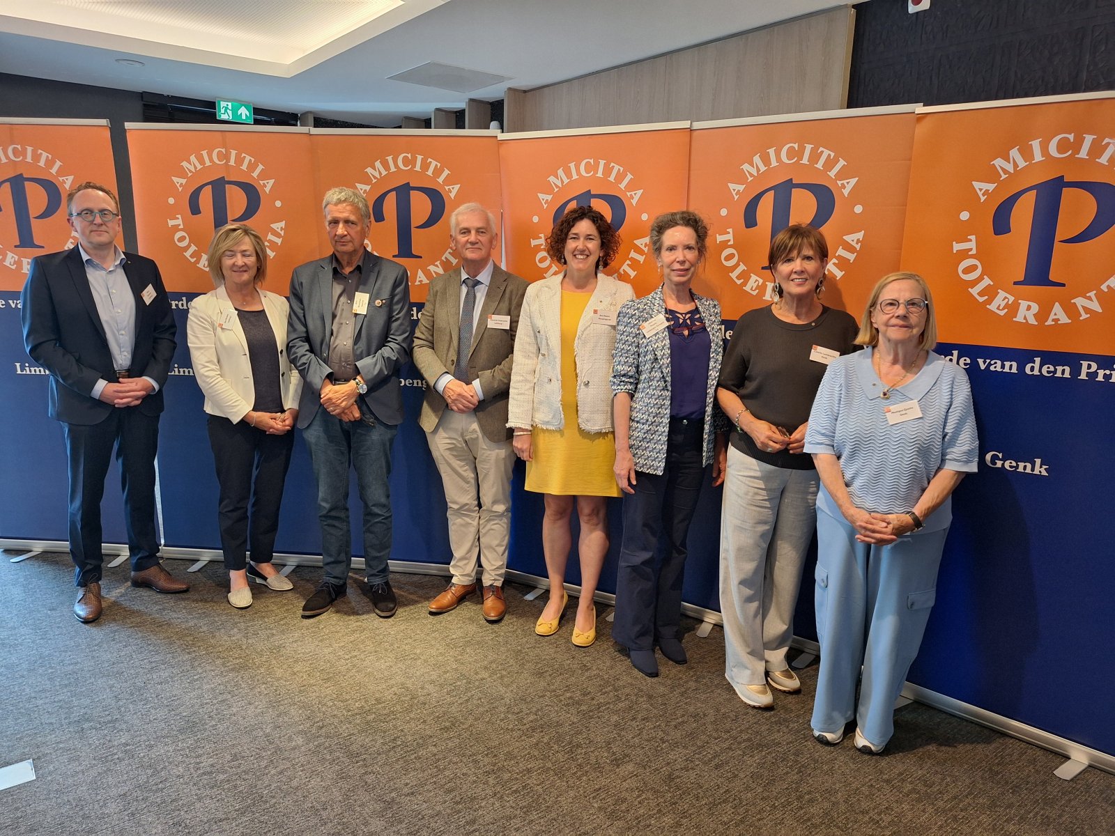 Na de pauze was er drie kwartier ingeruimd voor discussie en dialoog. Aan de hand van een aantal stellingen, waarop de bezoekers konden reageren met hun smartphones, kwam een levendige interactie op gang tussen bezoekers en de presentatoren. Een van de opmerkingen was: “Als alle Europeanen minimaal twee vreemde talen zouden moeten beheersen, zou iedereen prima met elkaar kunnen communiceren.” Vervolgens kreeg Peter Lepez, de gewestpresident, het woord. Allereerst was het tijd om de aanwezige nieuwe leden in het zonnetje te zetten en hen het Gulden Boek te laten tekenen. Vervolgens bedankte hij de afdeling Maastricht voor de vlekkeloze organisatie van deze dag en ging hij verder in op het thema bruggen bouwen. Hij benoemde de kracht van vriendschap en verdraagzaamheid, niet toevallig de pijlers waarop de Orde van den Prince is gebouwd. Vriendschap is de kracht die die bruggen draagt. Verdraagzaamheid is de sleutel tot het behouden van vrede en harmonie in onze samenleving. Wat ons in staat stelt om niet alleen samen te leven, maar ook echt verbinding aan te gaan, zijn twee krachtige krachten: taal en cultuur. Zij vormen de fundamenten voor vriendschap en verdraagzaamheid en zijn daarom dé kern waarrond de Orde van den Prince is gebouwd. Taal opent het gesprek. Cultuur opent het hart. Samen maken ze vriendschap en verdraagzaamheid mogelijk in een samenleving die steeds diverser wordt. Tot slot bedankte hij iedereen voor zijn en haar aanwezigheid.